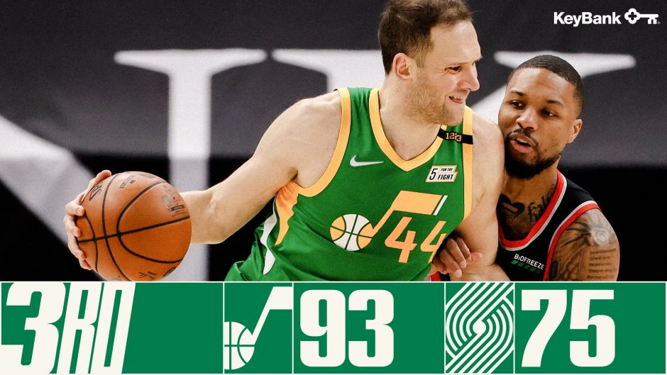 三节结束,爵士队以93-75暂时领先开拓者18分。