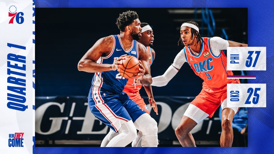 NBA常规赛:首节战罢,76人37-25领先雷霆