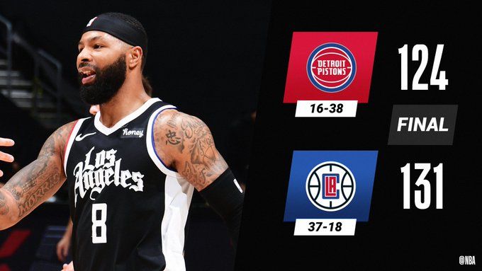NBA常规赛:小莫里斯33+6+1,快船131-124战胜活塞队