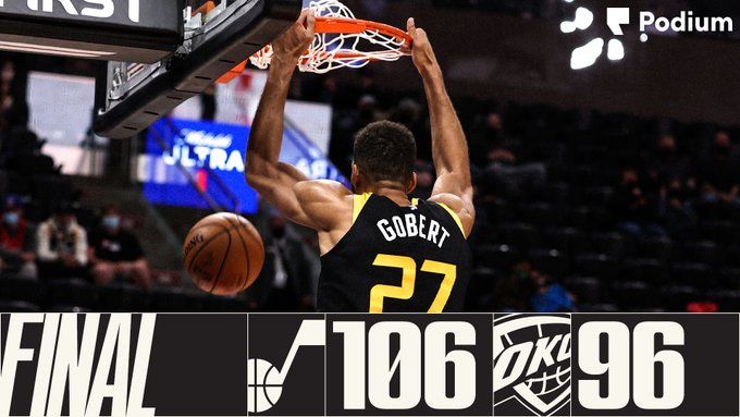 24直播网4月14日讯,2020-2021赛季NBA常规赛继续进行中,爵士vs雷霆,爵士凭借博格达诺维奇得分上双,以106-96战胜对手,分差10分,顺利拿下比赛,这场比赛爵士整体发挥出色,打出团队配合。