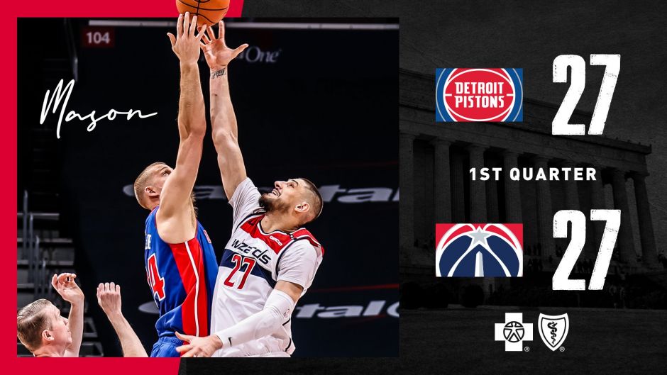 NBA常规赛:首节战罢,活塞27-27战平奇才