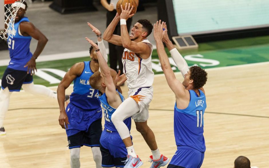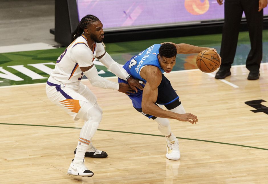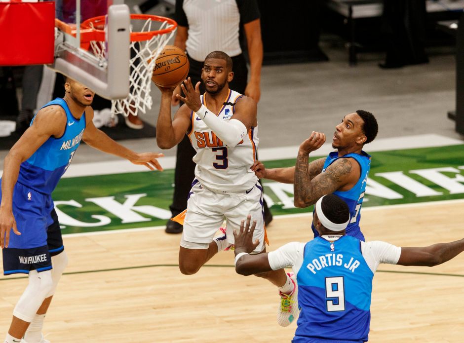 末节争夺, 两队轮换阵容同样不分伯仲,蒂格被帽后自己拿到球上篮命中两分,克雷格跟进上篮回应。约翰逊的三分帮助太阳把分差缩小到4分,米德尔顿连中两球后霍乐迪中投也有。布克命中三分,艾顿两罚都有帮助太阳继续咬住比分。两队各中一个三分,字母哥和霍乐迪先后打成,艾顿中投得手并助攻布克扣篮拿分,布里奇斯三分命中后两队继续打平。克劳德三分也有,保罗助攻艾顿上篮得手,太阳领先3分。米德尔顿造成犯规,太阳挑战失败,两罚全中后两队仅差1分。米德尔顿命中三分后布克跳投得手,两队战成116平。布克绝杀三分不中双方进入加时。