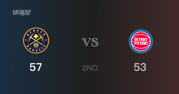 半场结束,掘金以57-53领先活塞4分,第三节再战。