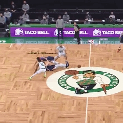 3、塔图姆底线晃起防守,突破内线打成2加1