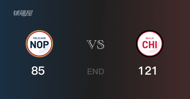全场比赛结束,最终公牛以121-85击败鹈鹕,成为获胜方。公牛球员扎克-拉文砍下全队最高21分,外加3篮板3助攻1抢断1盖帽、郎佐-鲍尔19分5篮板4助攻2抢断1盖帽、尼古拉-武切维奇16分10篮板2助攻4抢断,他们是公牛队里得分最高的三名球员。