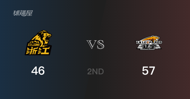 半场比分,辽宁以57-46领先广厦11分。