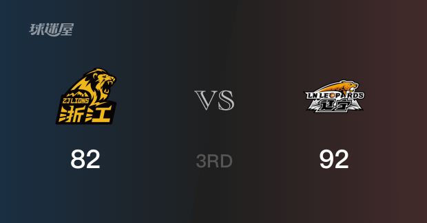 三节比分,辽宁以92-82领先广厦10分,末节再战。
