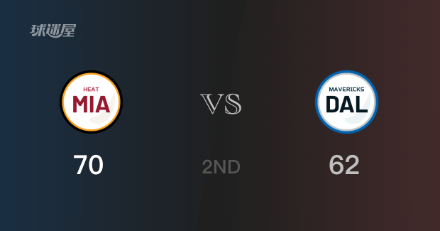 半场数据,热火以70-62领先独行侠8分。