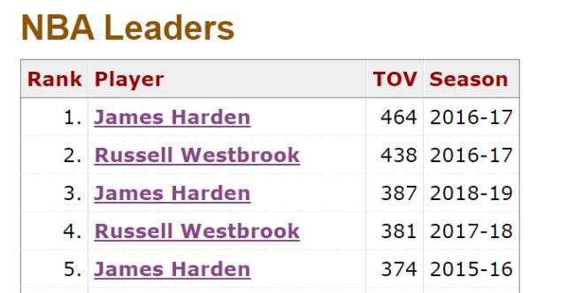 失误是威少的老毛病了,也是湖人球迷一直很担心他的问题。生涯至今,威少总失误数是4034次,排名历史第四,现役第二,在现役球员中只比詹姆斯少。单赛季失误前五位的排名中,威少占了两席,他曾在2016-17赛季失误438次,是历史第二多,2017-18赛季失误381次,是历史第四多,其余三席都被哈登占据。