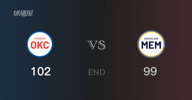 【战况】NBA常规赛:全场结束,雷霆102-99战胜灰熊,亚历山大23+5+4
