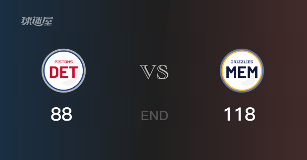 全场比赛,灰熊球员莫兰特全场砍下22分;活塞球员萨本全场砍下14分。全场结束,灰熊以118-88战胜活塞。