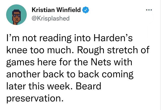 对此,篮网记者Kristian Winfield呼吁不要过度解读哈登的伤势,自然也是基于如此因素,哈登缺席更多是保存体能,毕竟篮网一周5场比赛,接下来还有周四与周五背靠背对决公牛与雷霆的比赛,外加周日对决鹈鹕的比赛。