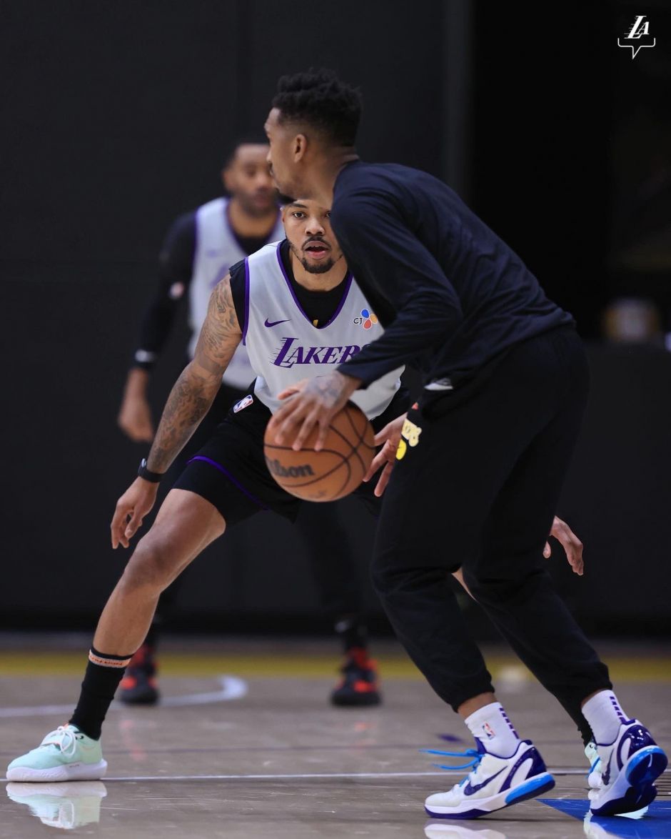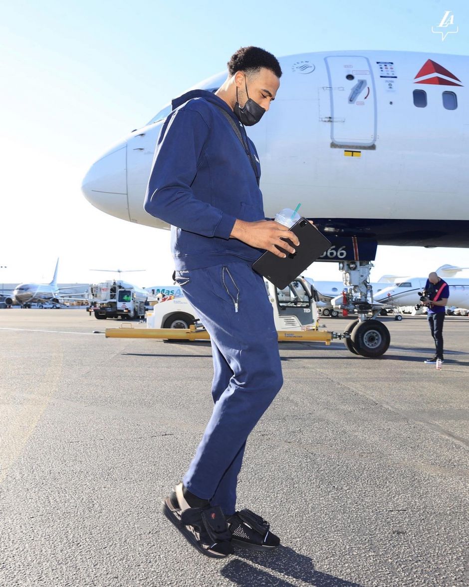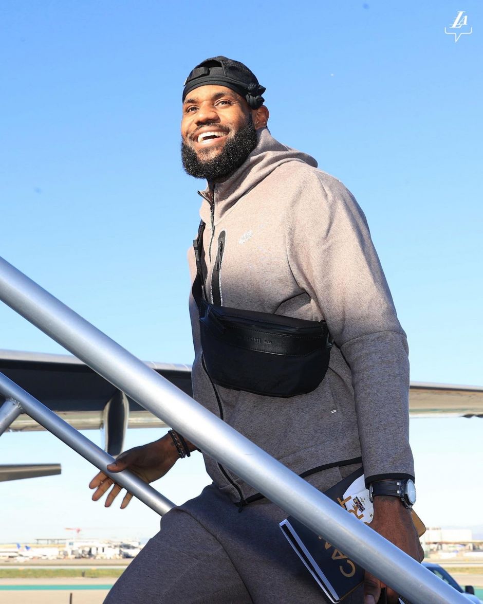 湖人官推晒出球员训练照和登机照,全队球员轻松备战。