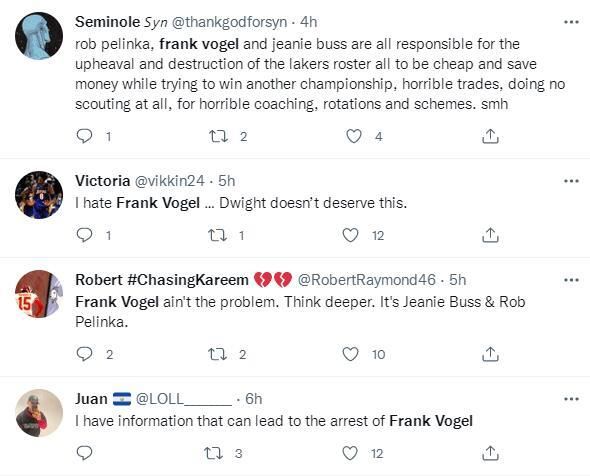 一位理性球迷表示:罗伯-佩林卡、教练沃格尔、老板巴斯都在为湖人的阵容变革与破坏负责。都是为了便宜省钱同时还想赢得另一个总冠军。可怕的交易,根本不做前期的考量;可怕的教练,糟糕的轮换与计划。