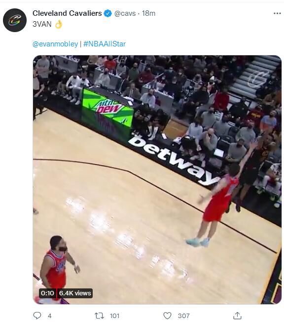 终场前3分14秒,加兰持球突破吸引防守,他找到了底角的埃文-莫布里,探花郎手起刀落命中三分球,这个三分命中后骑士队89-78拉开到11分算是制胜球。