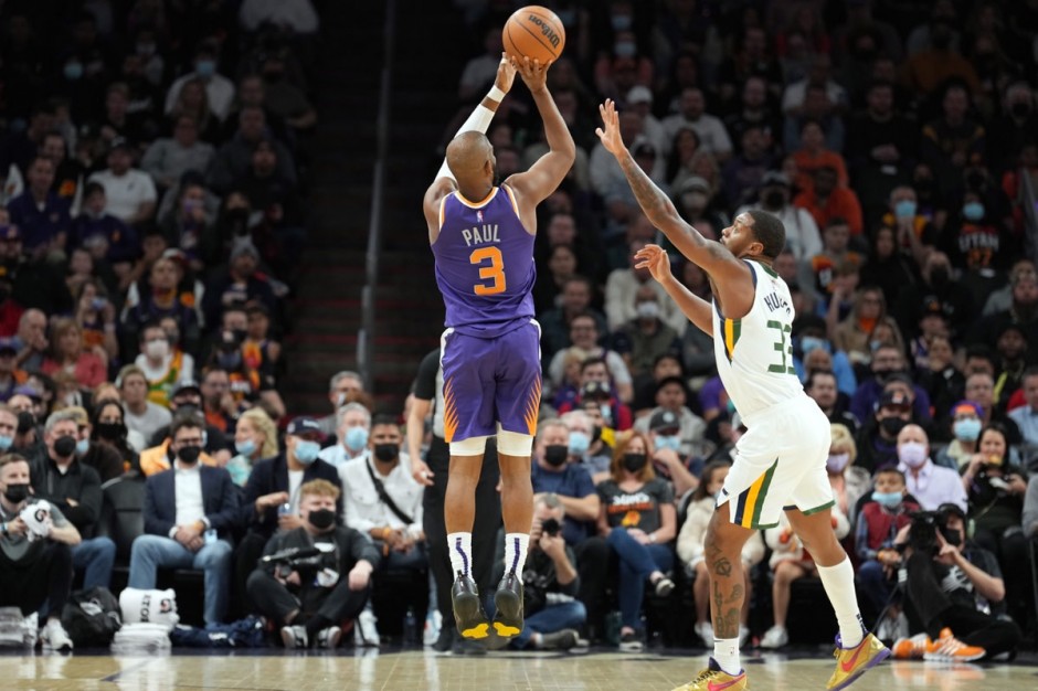 24直播网1月27日讯,2021-2022赛季NBA常规赛,太阳在客场105-97战胜爵士,太阳取得8连胜的好战绩。