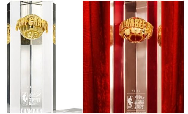 除此之外,NBA官方还公布了扣篮大赛、三分大赛与新秀挑战赛的全新奖杯。
