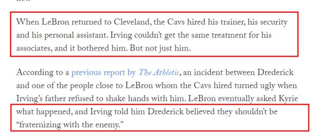 “我认为很多事情都是欧文的父亲推动的,”一位非常了解欧文和詹姆斯的消息人士说道,“当时的情况就是‘我得要这个,我也得要那个’,然后情况就发展成现在这样。”