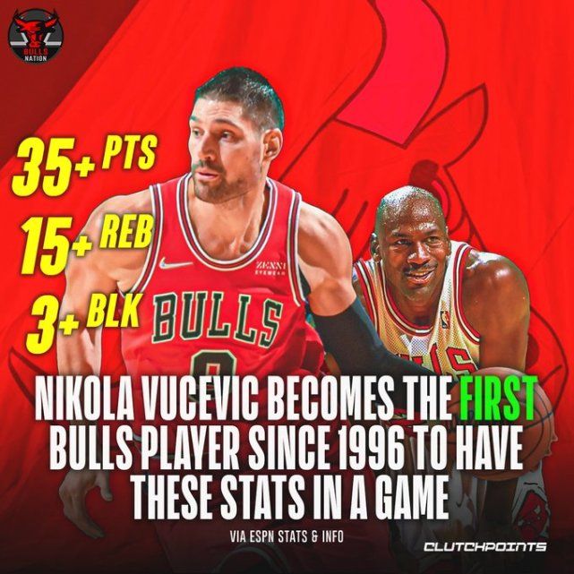 武切维奇成为1996年乔丹后第一位能单场拿下35分+15篮板+3盖帽的球员,如今没有人会说武切维奇是一个水货了,配不上亿元合同和昔日全明星的席位了。
