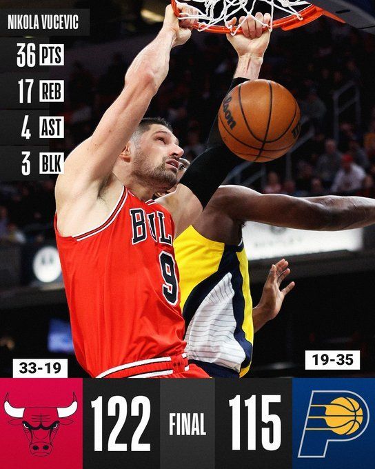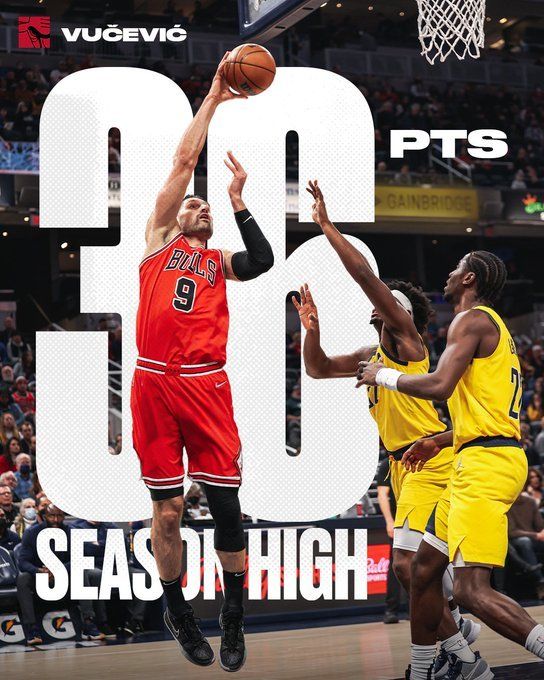 因为这场比赛是背靠背的第二场,多诺万安排了拉文与科比-怀特轮休,这让原本球队轮换捉襟见肘的公牛更难,马尔科姆-希尔、马特-托马斯、泰勒-库克等人都进入了轮换,武切维奇此役的发挥弥补了拉文的缺席,他很努力的去得分。全场比赛拿下了36分全队最高,全场仅次于勒维尔的42分。
