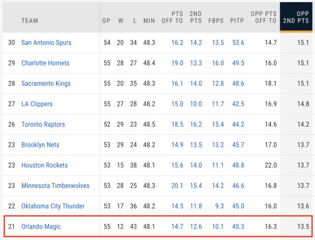 对本赛季这支魔术来说,限制对手二次得分一直是球队的问题所在,在这项数据上,魔术场均将对手二次进攻得分限制在13.5分是仅能排在联盟第21位的表现。虽然这样的表现不能完全归咎于莫-班巴,但他在篮板球上无法有足够好的卡位抢篮板能力很大程度上也是魔术无法得到更好地摘下防守篮板并且限制对手二次得分的因素之一。