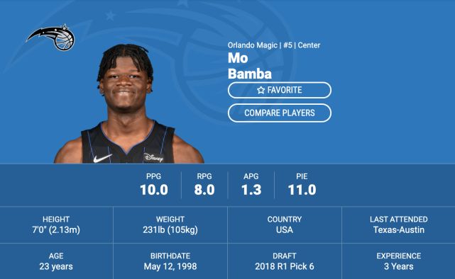 自从武切维奇离开魔术之后,莫-班巴就能在这支魔术阵中得到更多比赛机会,而且在数据上他确实能有较为明显的提升,只是如果莫-班巴要成为一名真正意义上有较好实力的首发中锋球员,他还有不少需要提升的空间。