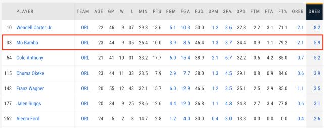 莫-班巴在2018年选秀大会最大的“卖点”就是拥有7尺10的臂展以及他作为篮筐保护者的潜力,至少在职业生涯至今,魔术也应该感受到班巴在作为篮筐保护者的存在感。