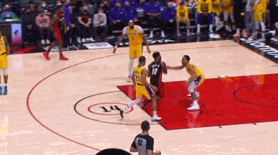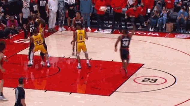 第二次漏判出现在距离比赛结束还有42.9秒,努尔基奇抢下防守篮板,詹姆斯在尝试抢断时打到了努尔基奇的手臂,这是一次防守犯规,裁判同样漏吹,获利方依然是湖人。