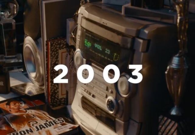 詹姆斯晒出的广告,片头就是2003年,詹姆斯坐在了儿时的房间里。17岁的詹姆斯说:“好吧,无线耳机……你能用手机看电影?你们还有电动汽车?”37岁的詹姆斯回应道:“是啊!”17岁的詹姆斯一脸惊讶:“未来真是太疯狂了!”