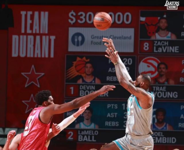 及至比赛进行到最后时刻,詹姆斯面对拉文与恩比德的夹击防守,用一记精彩的背打转身后仰命中绝杀,从而实现率队连续5年全胜的壮举。