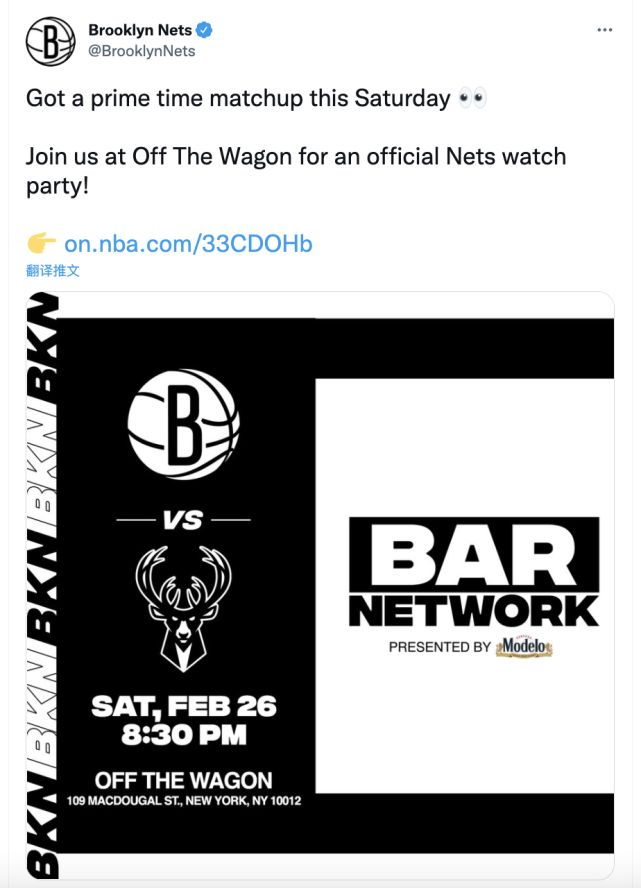 最后需要谈及的是,篮网在官方推特上晒出球队即将在北京时间2月27日对阵雄鹿的比赛预告: