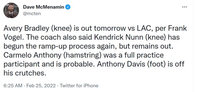 湖人消息:目标西部前六!浓眉已脱拐行走 安东尼大概率复出