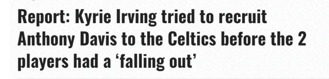 究竟这场争吵的细节是什么,已经不得而知了。2018-19赛季结束后,欧文离开了凯尔特人队,加盟了布鲁克林篮网队,并最终和杜兰特实现联手。而戴维斯则去了湖人,并和詹姆斯联手夺得一次总冠军。