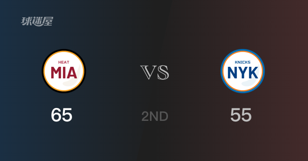 半场结束,热火以65-55领先尼克斯10分,第三节再战。