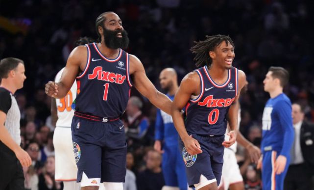 北京时间2月28日,76人客场125-109击败尼克斯。哈登迎来76人生涯第二战,贡献29分10篮板16助攻,恩比德轰下37分9篮板4盖帽,马克西21分7篮板。继上一场比赛合砍89分后,本场三人又合砍87分,费城的“马大哈”组合两场比赛狂轰176分,火力实在太猛了!赛后,哈登和恩比德拥抱庆祝胜利!