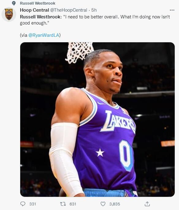 说白了威少也是湖人管理层、沃格尔的背锅侠,这套阵容没一个能放的,湖人当年夺冠阵容里的布拉德利、丹尼-格林、波普、卡鲁索、莫里斯、麦基、霍华德、库兹马都能防,现在的年老阵容根本不行。