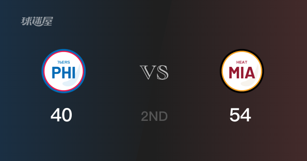 半场比分,热火以54-40领先76人14分。