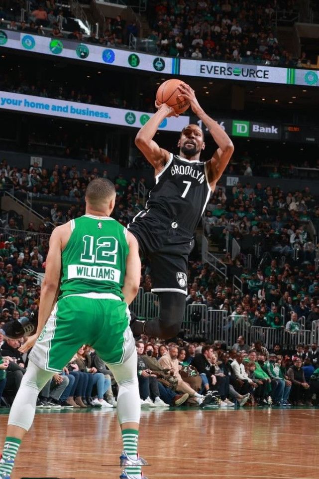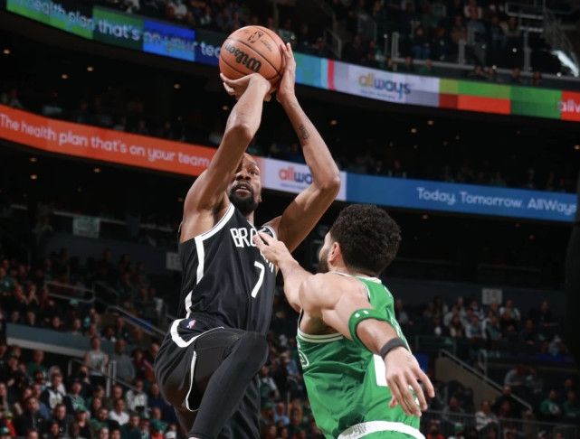 由于是客场作战,因此欧文也能够代表篮网出场,而这也让杜兰特在场上拥有了更大的进攻空间。篮网的首个进攻回合,杜兰特便突破至罚球线附近跳投得手,随后又面对霍福德命中了一记三分球。就表现而言,杜兰特在首节的状态是完美的,但是塔图姆的表现同样也不遑多让,他接连利用中投回应着杜兰特,也正是因为他的出色表现,凯尔特人在首节并没有被篮网拉开差距。