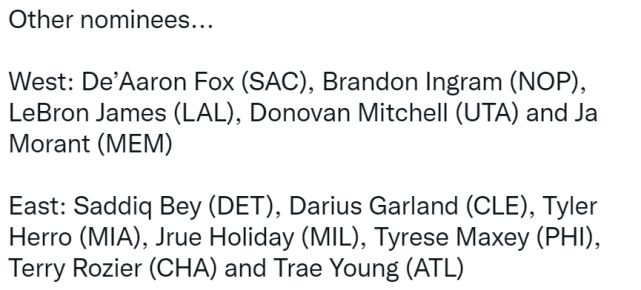 西部:福克斯、英格拉姆、詹姆斯、米切尔、莫兰特