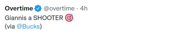 北京时间3月9日,雄鹿官方晒出了一段训练视频,视频中,字母哥和队友马修斯进行三分球投射比拼,最终,字母哥10次三分出手全部命中,赢下了这场训练中的对决。美媒OVERTIME转发这段视频时感慨字母哥的进化:“他是个射手。”
