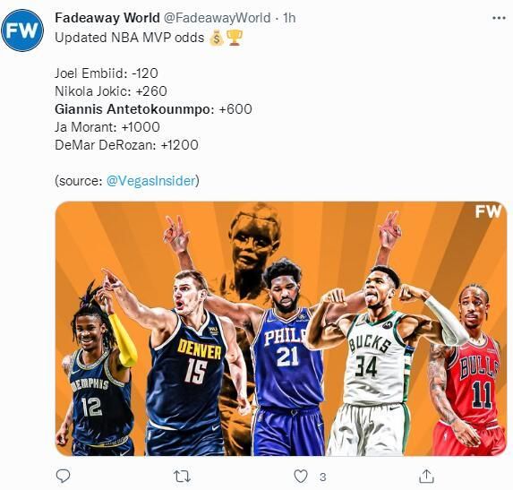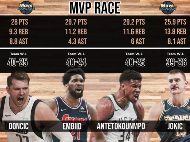 恩比德的MVP概率还是第一的,字母哥排在第三,从目前来看,约基奇、恩比德、字母哥已经呈现三足鼎立之势了,数据都华丽,最终就看战绩了。