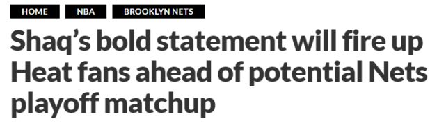 虽然有人会认为热火不想在第一轮打篮网,但奥尼尔认为他们会张开双臂欢迎挑战:“热火想要面对所有的挑战,并去把挑战消灭掉,”奥尼尔认为热火并不担心在季后赛首轮遇到篮网。遭遇前热火球星韦德则表示,不希望热火在第一轮面对篮网,但如果发生这种情况,会说“让他们上场”,而奥尼尔坚持认为“他们想要面对所有的挑战”。