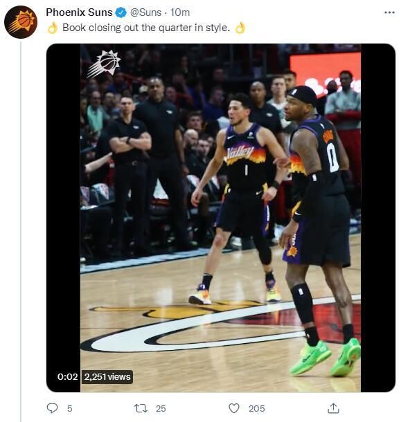 此役布克因为触发健康安全协议缺席了4场比赛,此役一复出就打出了完美的表现,上半场他8分5助攻,第三节单节5中3,三分2中1拿下9分3助攻2篮板1盖帽,数据已经是准三双。
