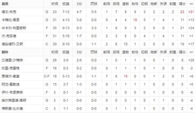 布克在场33分钟净胜对手31分,这就是布克复出后的第一场表现,布里奇斯在场净胜21分排在第二,沙梅特在场净胜20分第三。