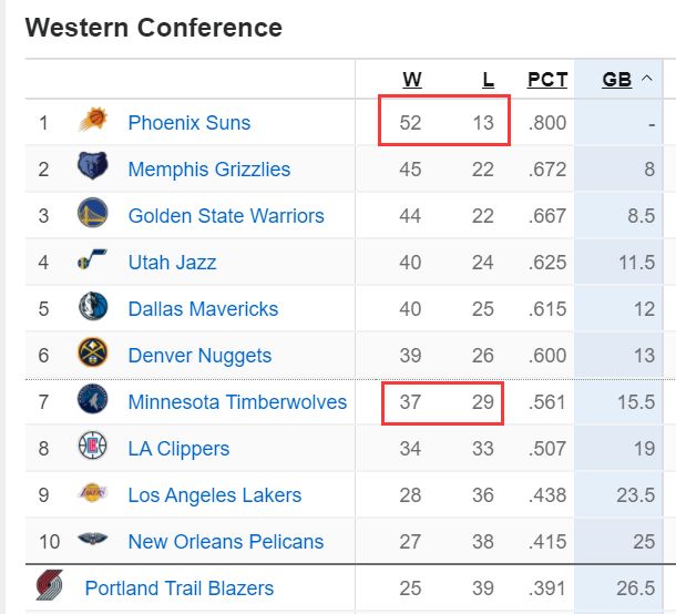 这场比赛之后太阳已经提升锁定季后赛了,此役后53胜13负领先第七的森林狼16个胜场差,就算太阳余下的16场比赛他们都能锁定一个季后赛的席位,没有克里斯-保罗的太阳依旧给力啊。