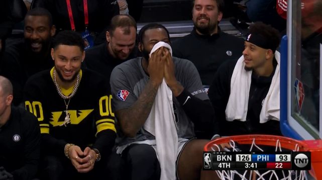 美媒评价,杜兰特摧毁了哈登和76人!他得到25分14篮板7助攻,欧文也贡献22分4篮板5助攻,而且防守哈登很成功,从费城被换到篮网的库里贡献24分。比赛中,哈登在场边治疗腿部,之前他的腿筋有伤。昔日的76人三大旧将,西蒙斯、庄神和小库里都在场边乐开了花。