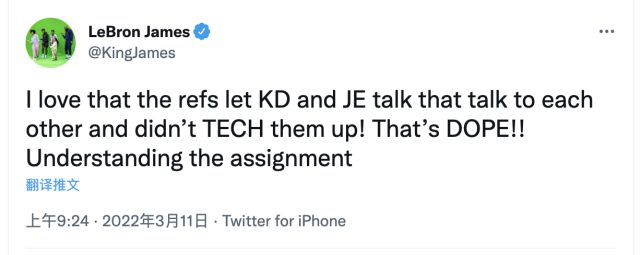 “我喜欢裁判让KD和JE之间互相交谈,而不是阻止他们!”