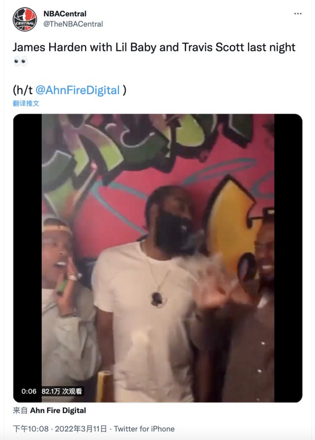 只是这样一场比赛似乎并没有影响到詹姆斯-哈登丰富的夜生活,据报道,哈登在赛后就与说唱歌手Lil Baby和Travis Scott参加另一位朋友的生日派对,在这段被曝出的视频中,哈登的心情看似并没有受到球队输球的影响: