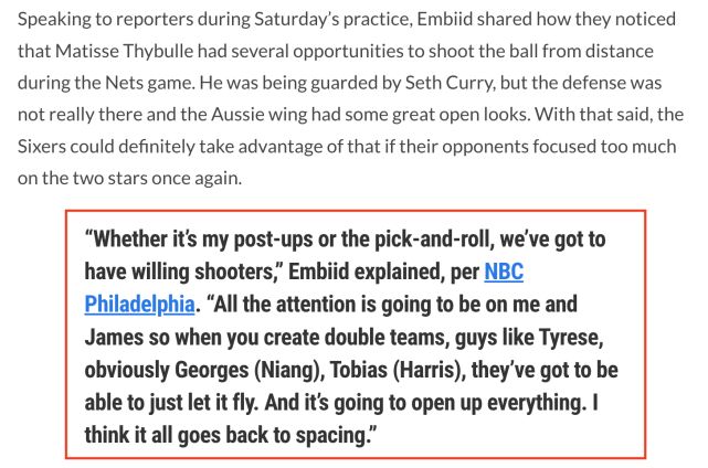 哈登和恩比德的搭档肯定就是76人进攻端的绝对关键,但如果像塞布尔、尼昂和哈里斯等球员也能在外线有所发挥,这确实会让76人打出更好的进攻端表现。