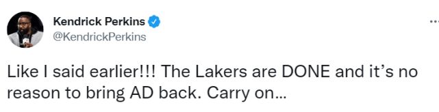 名嘴帕金斯赛后点评道:“就像我早些时候说的那样,湖人已经完蛋了,没理由让浓眉复出了……”